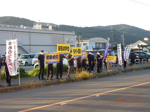 334-D地区の92ライオンズクラブが同日同時刻に幹線道路沿いに立ち、ドライバーに「早めの点灯を呼びかける交通安全啓蒙活動」を実施。