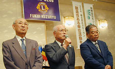 高田順一地区ガバナーを迎え、7ライオンズクラブより160余名が参加しました。ガバナーより334-D地区のアクティビティ・スローガンである「友愛の奉仕を重ねて半世紀、今、共に歩もう改革への道」について、熱の入った説明があり、出席者一同 心を新たにしました。続いて、福井市長への記念事業の目録が贈呈されました。今回のクラブ公式訪問の記念事業として、福井市郷土歴史博物館の前に「イヌマキ」の植樹を行いました。福井市長に地区キャビネット役員、役員、各クラブの会長、幹事が出席しました。